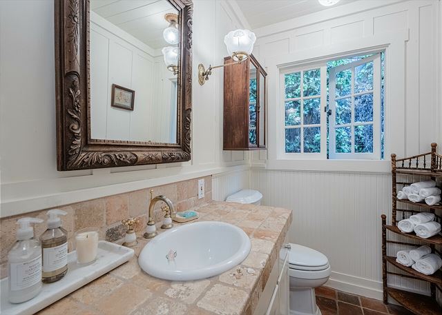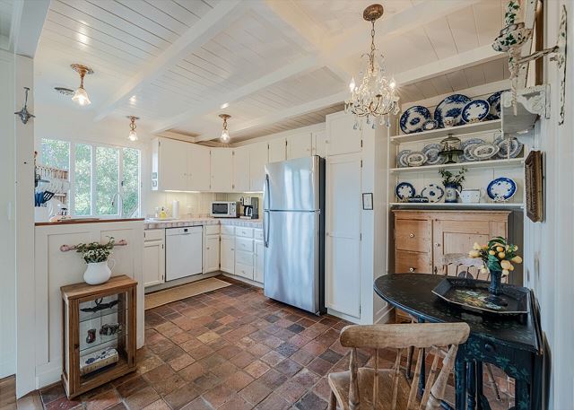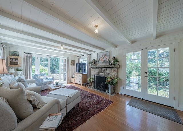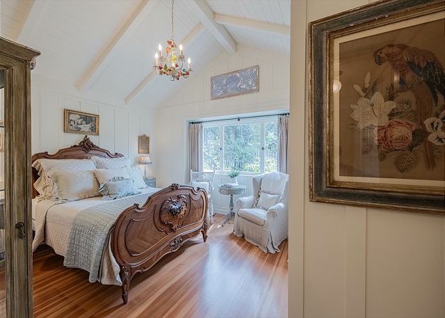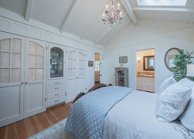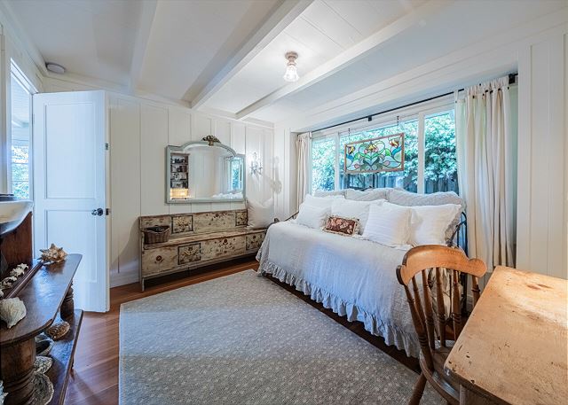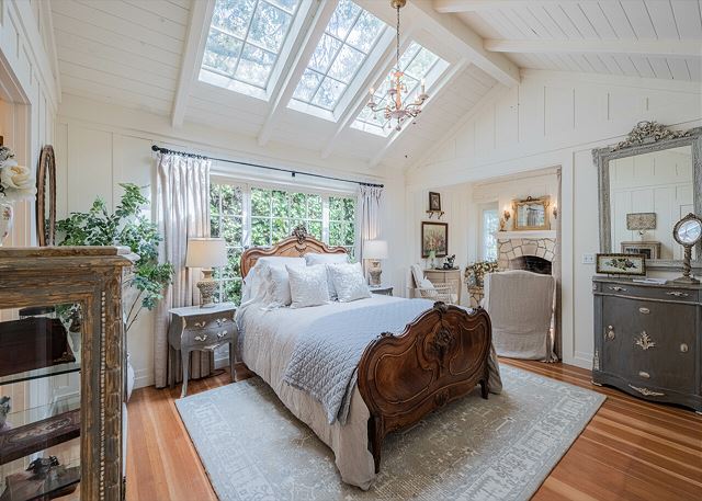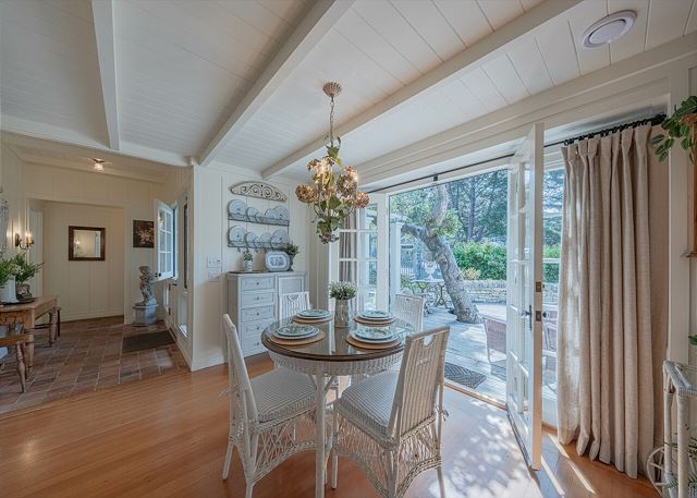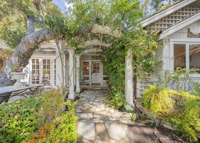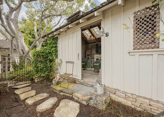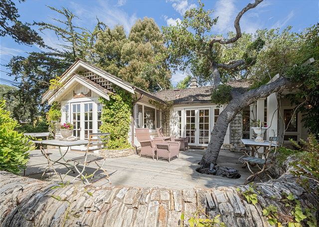 "Casanova by the C" is a wonderfully charming 2 bedroom (queen/queen), 2 ½ bath Carmel-by-the-Sea home in an ideal location! Plenty of outdoor living space, with both a patio and deck. This home is beautifully decorated with French antiques and hardwood floors throughout. Living room equipped with TV, DVR, DVD player and gas-log Carmel stone fireplace. French doors lead out to patio. Kitchen has a gas range, microwave, dishwasher, and disposal. Dining room has a round glass table with seating for 4. Primary bedroom (queen) has a gas-log fireplace; bathroom has a tub/shower. Guest bedroom also has a queen bed; hall bathroom with a tub/shower. Third room is used an office--equipped with high speed internet and a fax machine. Half bathroom also has the washer/dryer. Detached Garden Room get away has a gas log fireplace and two reading chairs! Street parking only. NO PETS. NO SMOKING. 30 NIGHT MINIMUM. PROPERTY CODE: SCA51